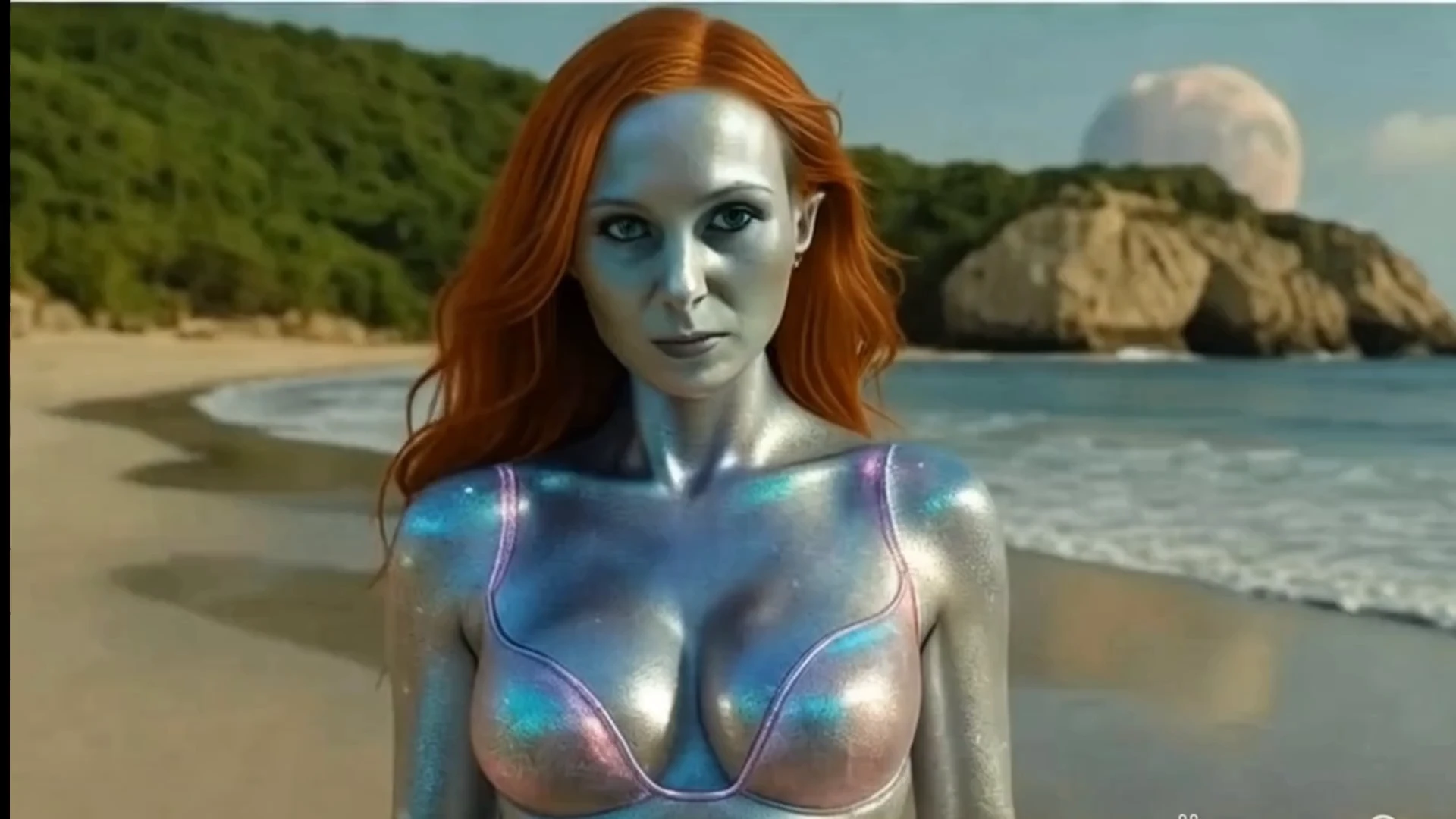 Alien beach babe, making hearts race
